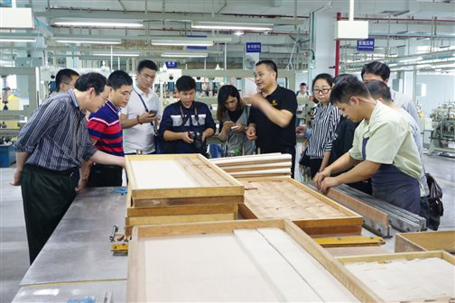 上午,經銷商來到位于南海大瀝的木材廠參觀,詳細了解全球最大的木材加工處理基地的基本情況、木材的保存和干燥、木材的識別方法、選材等,并逐個車間參觀生產流程和工藝。