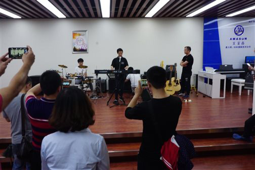在珠江鋼琴數碼樂器產業基地參觀時,艾茉森公司工作人員向經銷商們演示最新研發的可以媲美百萬級大三角琴鋼琴音色的第三代音源數碼鋼琴 F-13、家居型數碼鋼琴S5以及卡拉OK型數碼鋼琴K5,并邀請經銷商現場演奏電 聲樂器,強烈的節拍,頗有現代搖滾樂的韻味。